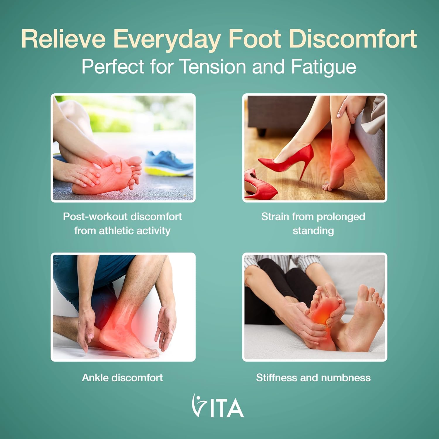 Gentle heat helps warm tight areas around the heel and ankle, easing stiffness and promoting a relaxed, comfortable feel. Soothing vibration adds a calming massage sensation that helps reduce daily foot tension and discomfort from overuse.